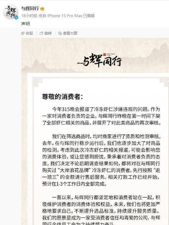 即使领有着百亿的公司,他也还频频地活跃在直播间,3.15号他的公司号发布了他的最新一条,